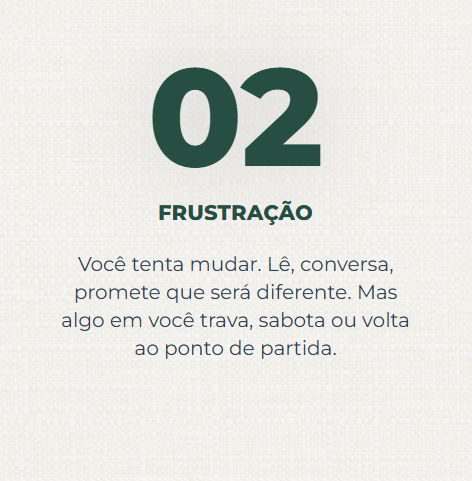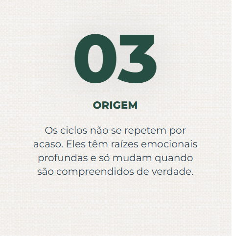 Aqui eu quero saber tudo que já aconteceu ou está acontecendo na sua vida, antigos relacionamentos, traumas e frustrações, crenças que limitaram o seu crescimento. Totalmente livre de julgamentos, vamos estabelecer nossa relação de confiança e de mudanças.